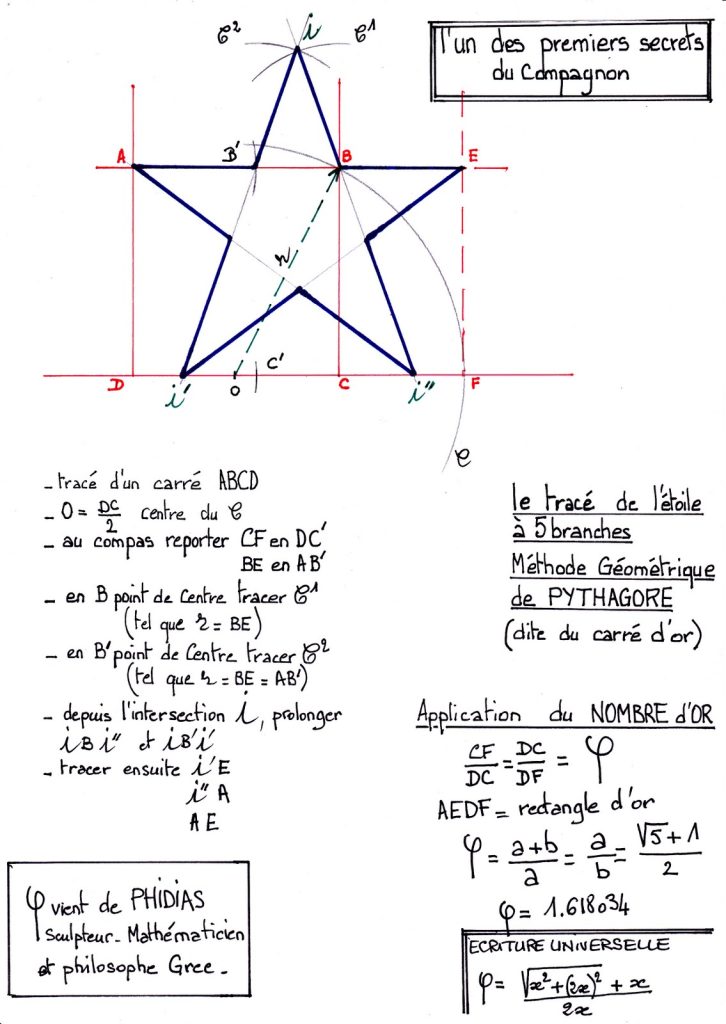 L’étoile à 5 branches « pentagramme » ou « pentacle » (étoile de Salomon), rappelle par sa disposition, la silhouette d’un homme, bras et jambes écartés. Elle représente en général, les 5 éléments, la terre, l’air, l’eau, le feu et l’esprit. Pour les chrétiens, 5 est le chiffre qui rappelle les plaies du Christ.