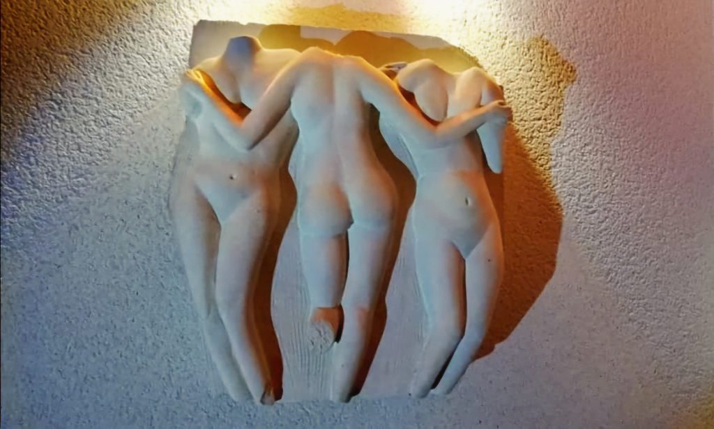« Les Trois Grâces » – Sculpture en bas relief – Pierre de Lavoux – Pays Guépin 2000