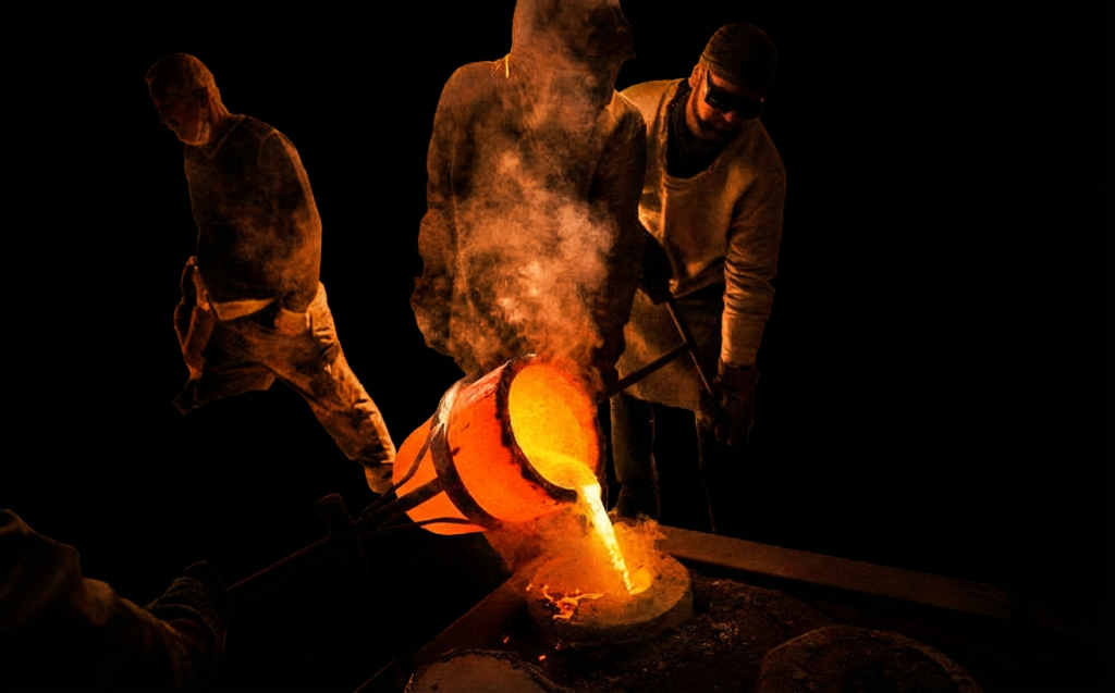 Coulage du bronze dans une fonderie en Espagne – Photo Guépin
